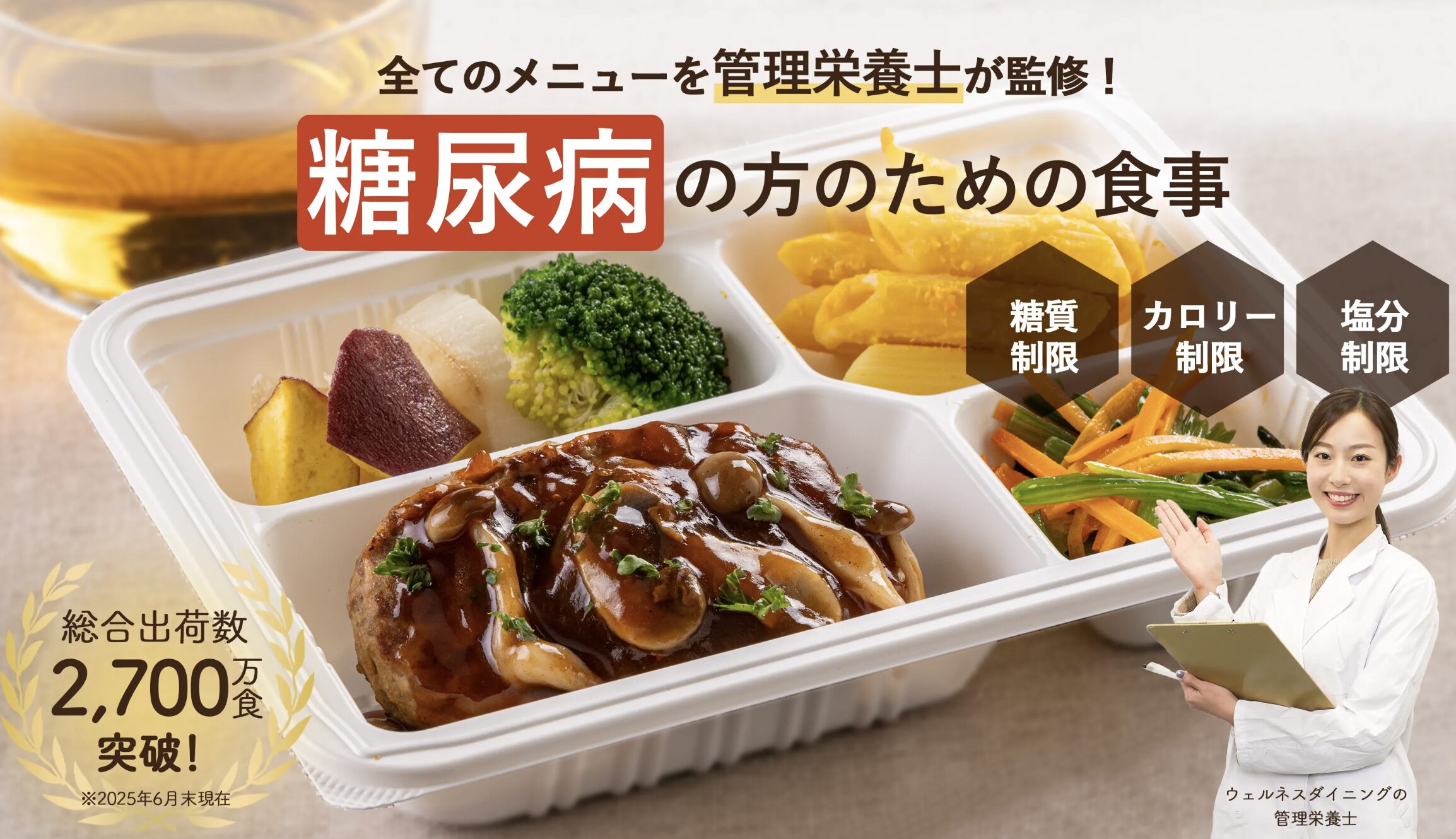「ウェルネスダイニング」は食事制限専門の宅配弁当を提供しています。管理栄養士が監修した、糖尿病の方向けの「糖質&カロリー制限気配り宅配食」は制限をしつつ満足感の高い食事です。